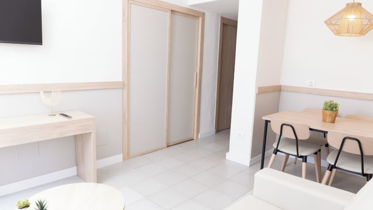 In den Apartments finden sich Wohnzimmer, Küchen und Badezimmer. Eine Klimaanlage sowie eine Heizung sorgen für ein angenehmes Raumklima. In den meisten Unterkünften gibt es einen Balkon mit Meerblick. Die Zimmer sind mit einem Sofabett und separaten Schlafzimmern ausgestattet. Ein Kühlschrank, eine Mikrowelle, ein Herd und eine Tee-/Kaffeemaschine sind ebenfalls vorhanden. Dazu zählen auch ein Telefon, ein TV-Gerät und WLAN (gegen Gebühr). Familien- und Nichtraucherzimmer sind verfügbar.