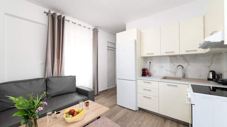 E.Berdufi Apartament Sea View bietet Unterkünfte mit einem Balkon und kostenlosem Wifi. Die Ferienwohnung ist klimatisiert und umfasst 1 separates Schlafzimmer, ein Wohnzimmer, eine voll ausgestattete Küche sowie ein Badezimmer. Zur Ausstattung gehört ein Flachbild-TV. Zudem gibt es eine Terrasse und kostenlose Privatparkplätze.