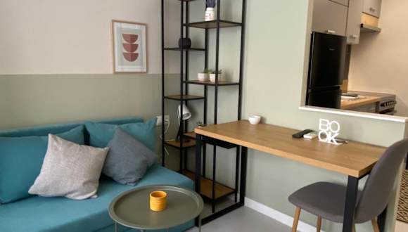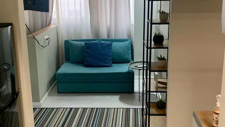 Die Ferienwohnung besteht aus einem Schlafzimmer, einem Wohnzimmer und einer voll ausgestatteten Küche mit Kühlschrank und Kaffeemaschine. Das Badezimmer ist mit einer Dusche und kostenlosen Pflegeprodukten ausgestattet. Handtücher und Bettwäsche werden bereitgestellt.