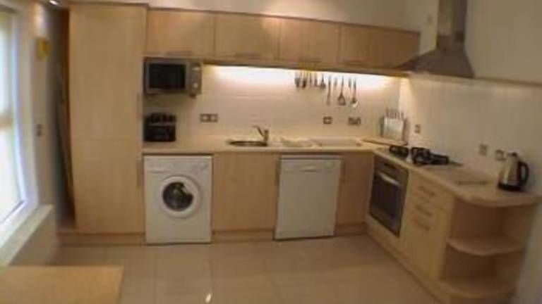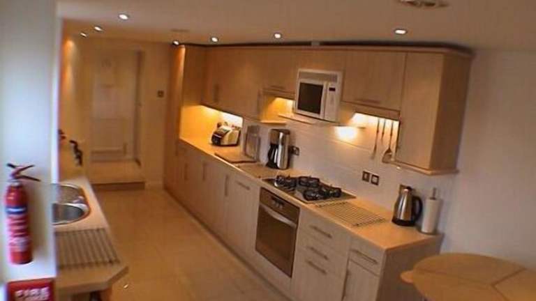 Die Wohneinheiten sind mit einer Küche ausgestattet, welche unter anderem einen Kühlschrank sowie einen Geschirrspüler umfasst. Für die Zubereitung von Getränken sind eine Kaffeemaschine, eine Mikrowelle und ein Wasserkocher vorhanden. Das Apartment bietet somit die Möglichkeit zur Selbstverpflegung.