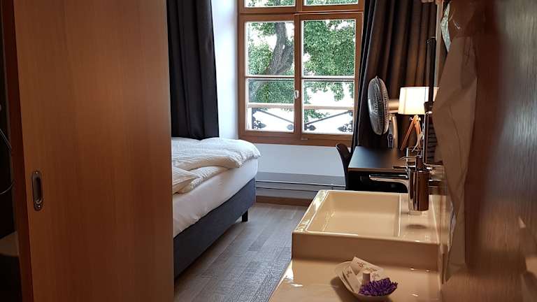 Die Zimmer bieten Aussicht auf die Stadt, den Fluss oder den Innenhof. Zur Ausstattung gehören ein Sitzbereich mit einem Arbeitsbereich, ein Flachbild-Sat-TV, ein Safe und ein Badezimmer mit Dusche, WC und kostenlosen Pflegeprodukten.