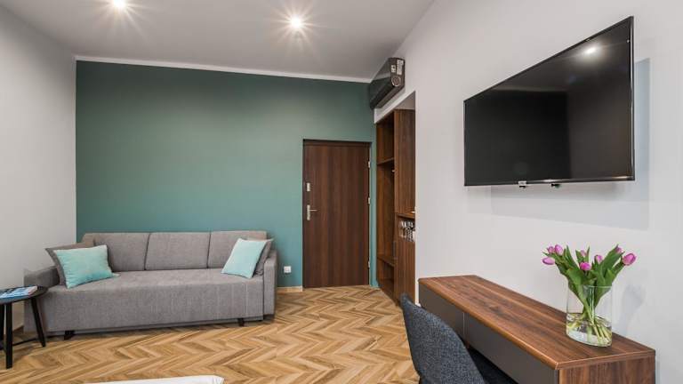 EASY RENT Piłsudskiego 6 hat in jeder Wohneinheit ein eigenes Badezimmer mit Dusche, Klimaanlage sowie einen Flachbild-TV und Kühlschrank. Einige Wohneinheiten verfügen zusätzlich über einen Sitzbereich und/oder einen Balkon. Die Unterkunft ist nichtraucherfreundlich und verfügt über allergikerfreundliche Zimmer.