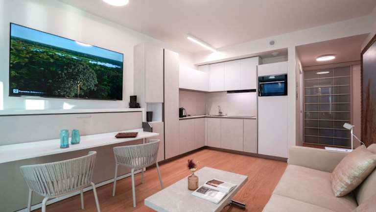 Die Ferienwohnung umfasst ein klimatisiertes Schlafzimmer sowie ein Badezimmer mit Bidet, Dusche und kostenlosen Pflegeprodukten. Sie verfügt über eine gut ausgestattete Küche mit Kühlschrank, Ofen und Herdplatte. Bettwäsche, Handtücher und Wäsche werden nach den Richtlinien der örtlichen Behörden gewaschen und die Unterkunft wird zwischen den Aufenthalten desinfiziert.