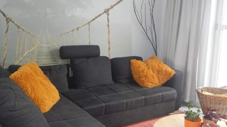 Das Ferienhaus besteht aus zwei Schlafzimmern, einem Wohnzimmer, einer voll ausgestatteten Küche mit Kühlschrank und Kaffeemaschine sowie einem Badezimmer mit Dusche. Handtücher und Bettwäsche werden bereitgestellt. Die Zimmer sind schallisoliert und bieten eine angenehme Bequemlichkeit.