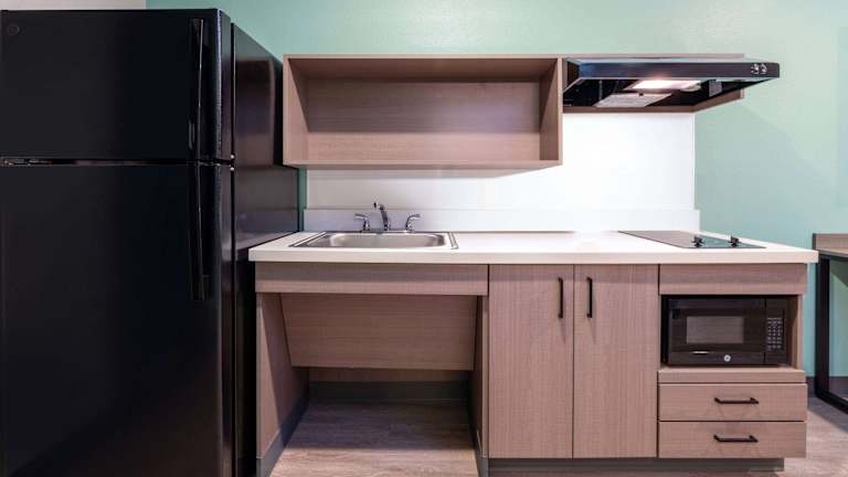Die Zimmer in der Unterkunft ECHO Suites Extended Stay by Wyndham Madison sind mit einem Flachbild-TV sowie einer voll ausgestatteten Küche ausgestattet, die einen Kühlschrank umfasst. Jedes Zimmer bietet eine gemütliche Atmosphäre und ist gut durchdacht für den Aufenthalt der Gäste.