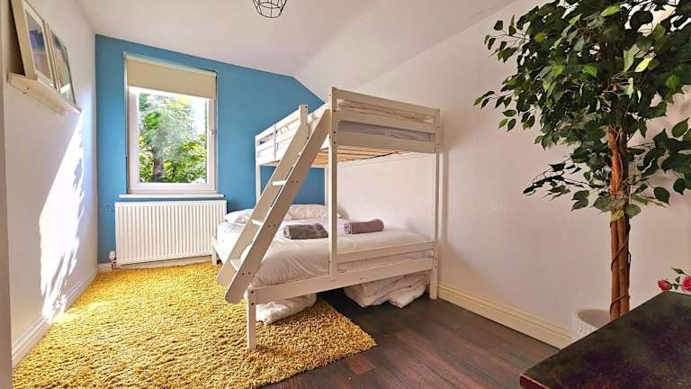 Das Ferienhaus verfügt über vier Schlafzimmer, ein Wohnzimmer sowie eine voll ausgestattete Küche, die mit einem Kühlschrank und Wasserkocher ausgestattet ist. Zusätzlich bietet die Unterkunft ein Badezimmer mit Dusche und Haartrockner. Handtücher und Bettwäsche sind im Preis inbegriffen.