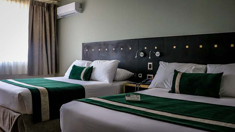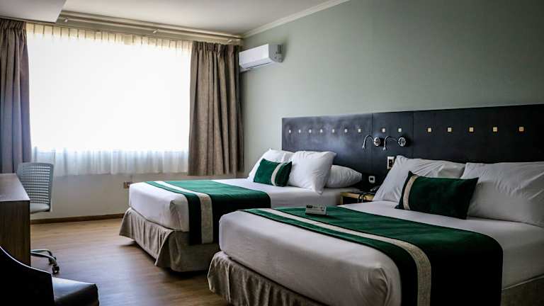 Die Zimmer sind mit einer Klimaanlage und Heizung ausgestattet, bieten ein Doppelbett, einen Safe, eine Minibar sowie einen Schreibtisch. Jedes Zimmer verfügt über ein modernes Badezimmer mit Dusche und Badewanne, Haartrockner und kostenfreien Pflegeprodukten. Die Ausstattung schliesst zudem einen Minikühlschrank, ein TV-Gerät sowie kostenfreies Wifi ein. Das Hotel bietet auch rollstuhlgerechte Zimmer mit barrierefreiem Bad an. Familien- und Nichtraucherzimmer sind ebenfalls verfügbar.