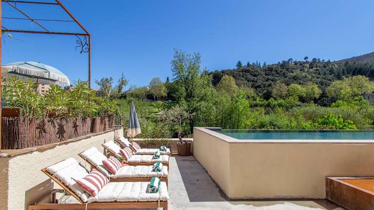 Die Unterkunft Ecole Olargues - Chambres & restaurant - Teritoria bietet eine einladende Atmosphäre mit einem eigenen Aussenpool, einem Garten und einer Terrasse. Zu den Dienstleistungen gehören ein Zimmerservice und ein Conciergeservice, sowie die Möglichkeit zur Nutzung des kostenlosen Wifis. Eine Bar rundet das Angebot ab.