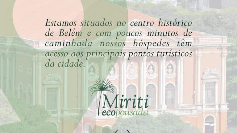 Das Ecopousada Miriti liegt im historischen und kommerziellen Stadtzentrum von Belém. In der Nähe befinden sich viele Einkaufszentren, Bäckereien, Restaurants, Apotheken, Banken und Krankenhäuser. Die Umgebung bietet zudem Sehenswürdigkeiten wie den Platz der Republik, das Teatro da Paz, den Ver-Peso-Markt, die Basilika Nossa Senhora de Nazaré und das Estação das Docas.