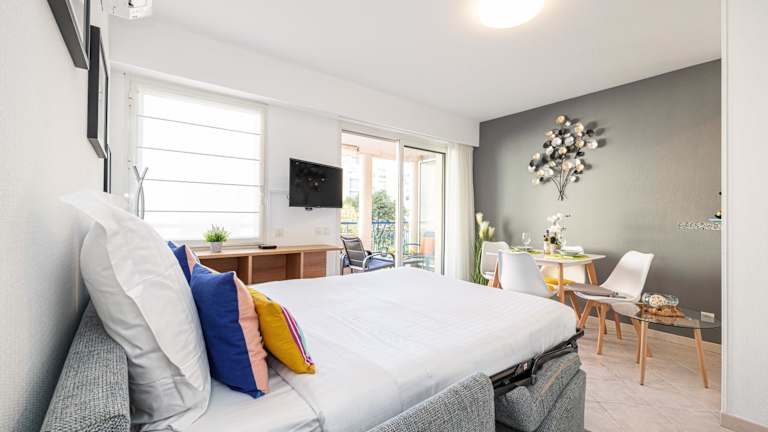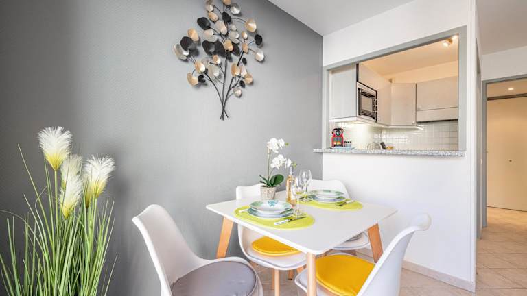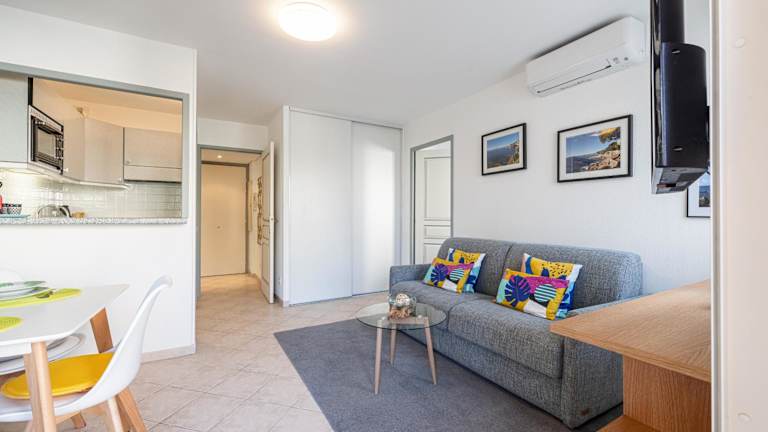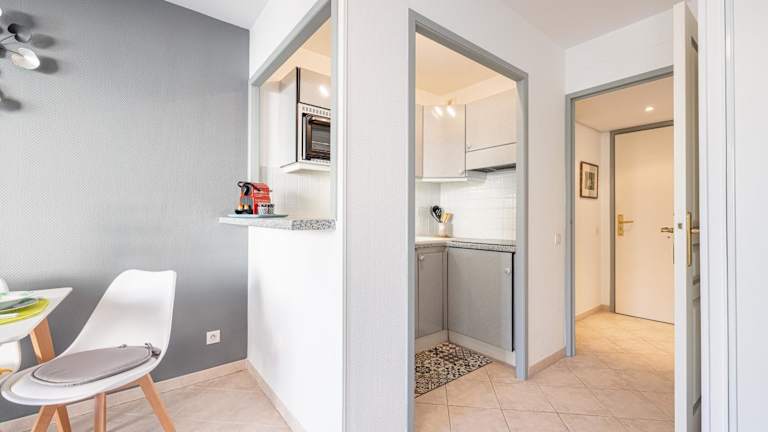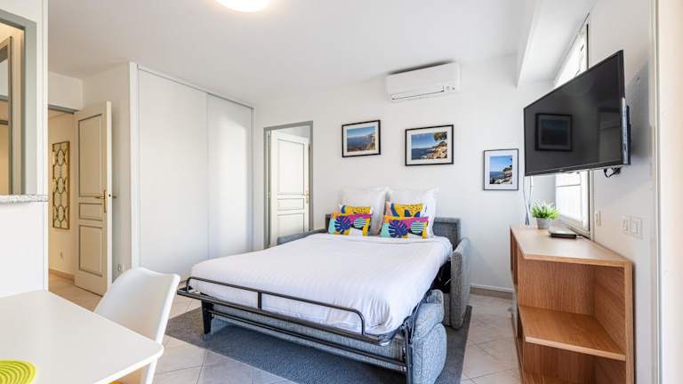Die Ferienwohnung umfasst 1 Schlafzimmer und ist mit einer Küche ausgestattet, die einen Kühlschrank und einen Geschirrspüler beinhaltet. Ein Flachbild-TV sowie ein Sitzbereich sind ebenfalls vorhanden. Das Badezimmer verfügt über ein Bidet. Handtücher und Bettwäsche werden zur Verfügung gestellt.