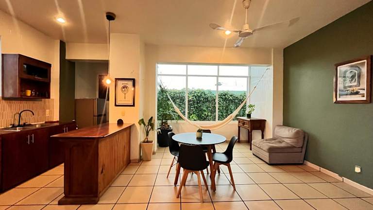 Die Wohneinheiten im Edificio Teocalli sind mit Fliesenböden ausgestattet und umfassen einen Sitzbereich mit einem Flachbild-TV sowie eine voll ausgestattete Küchenzeile. Zudem steht ein eigenes Badezimmer zur Verfügung.