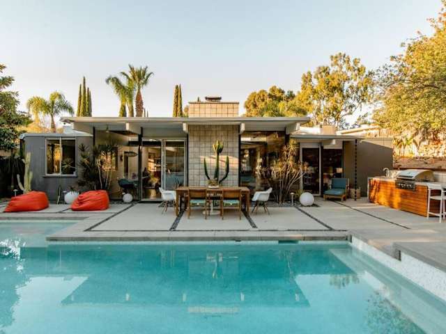 Eichler Mid Century Modern Designer Pool/Jacuzzi bietet Übernachtungsmöglichkeiten in einem Ferienhaus mit einem designspezifischen Mid-Century-Stil. Die Unterkunft verfügt über einen Aussenpool, eine Sonnenterrasse und einen Grillbereich. Gäste dürfen sich auf einen Garten und eine ruhige Atmosphäre freuen. Das Hotel bietet zudem kostenlose Parkiermöglichkeiten.