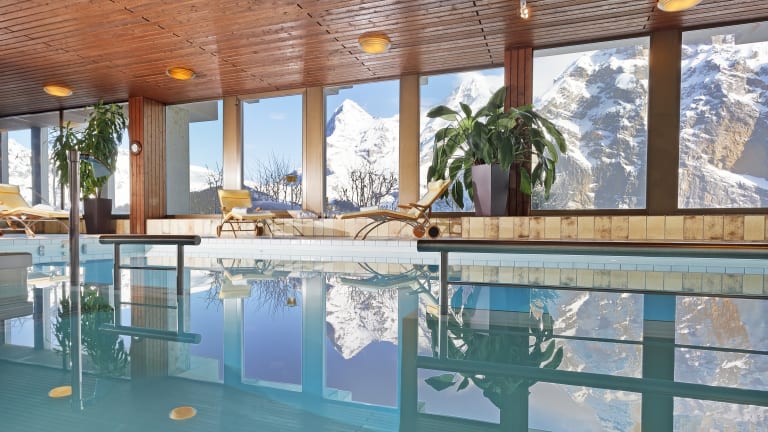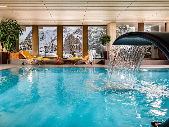 Einziges Hotel in Mürren mit eigenem Hallenbad, Sprudelbad, Sauna und Solarium. Im Winter endet Ihr Skitag vor unserem Skiraum und im Sommer starten die Wanderwege direkt von unserem Hotel
