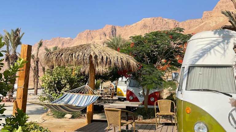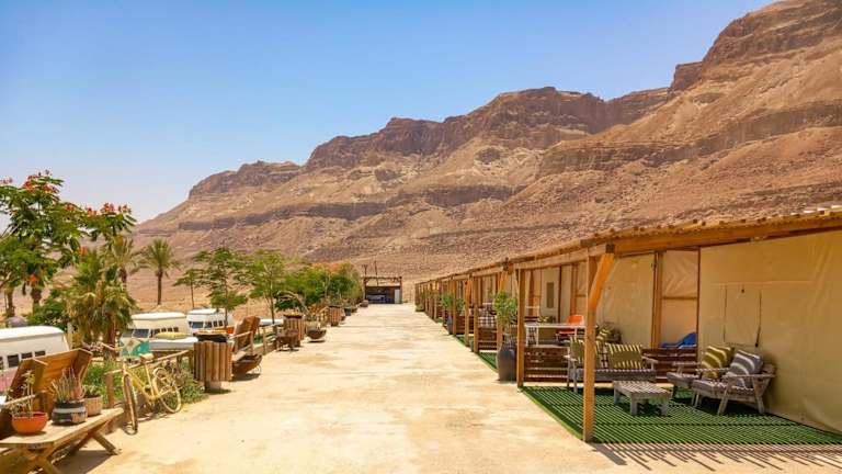 Das Ein Gedi Camp Lodge befindet sich im Kibbutz Ein Gedi, nur 300 m vom Botanischen Garten entfernt. Die Umgebung bietet einladende Wandermöglichkeiten und liegt in der Nähe des Strandes von Ein Bokek, der sich 30 km entfernt befindet.