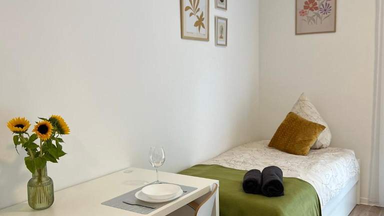 Die Ferienwohnung Ein Zimmer Studio Wohnung bietet eine praktische Unterkunft für Gäste, die Wiesbaden und die Umgebung erkunden möchten. Die Unterkunft ist familienfreundlich, Nichtraucher und wird von einem privaten Gastgeber betrieben.