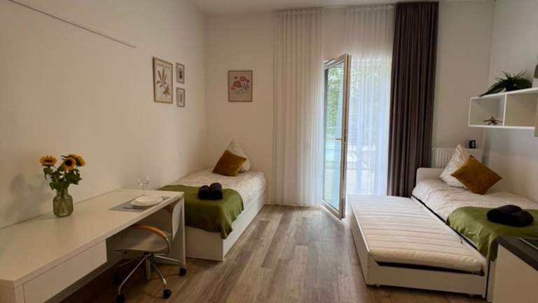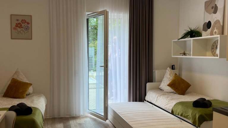 Die Ferienwohnung verfügt über zwei Schlafzimmer, eine Küche, die mit einer Mikrowelle und einer Herdplatte ausgestattet ist, sowie ein Badezimmer mit Dusche und Haartrockner. Handtücher und Bettwäsche werden in der Wohnung bereitgestellt.