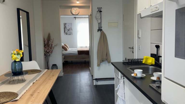 Die Wohneinheiten sind mit einer voll ausgestatteten Küche ausgestattet, welche eine Kaffeemaschine, einen Wasserkocher sowie Kühlschrank, Ofen und Herdplatte umfasst. Essenslieferungen in die Unterkunft sind möglich, ansonsten sind keine spezifischen Verpflegungsmöglichkeiten beschrieben.