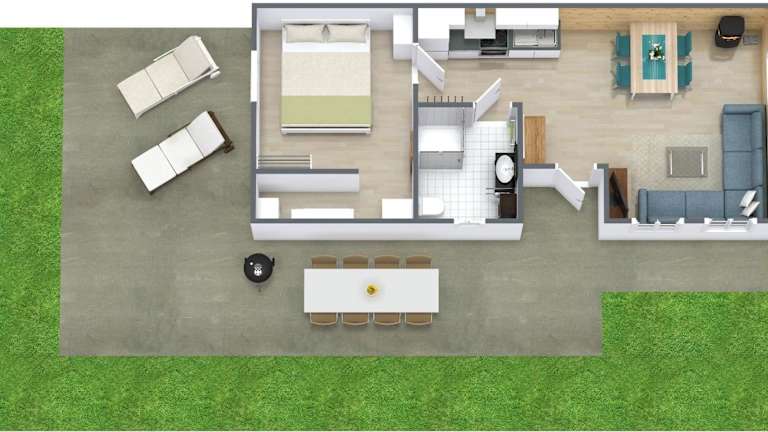 Das Ferienhaus ist klimatisiert und umfasst 1 Schlafzimmer, ein Wohnzimmer sowie eine voll ausgestattete Küche mit Kühlschrank und Kaffeemaschine. Das Badezimmer ist mit einer Dusche und einem Haartrockner ausgestattet. Handtücher und Bettwäsche werden zur Verfügung gestellt.