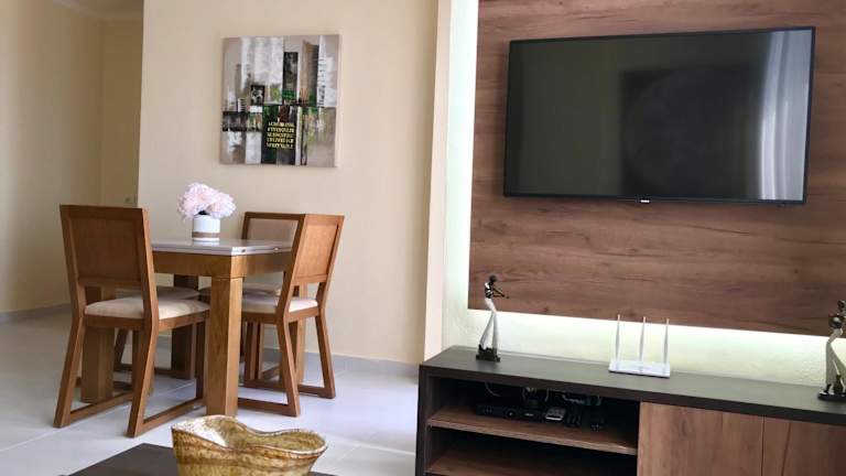 Die Ferienwohnung verfügt über ein Schlafzimmer, ein Wohnzimmer und ein Badezimmer, das mit einem Bidet sowie einer Badewanne oder Dusche ausgestattet ist. Zur Ausstattung gehören ein Satelliten Flachbild-TV und eine gut eingerichtete Küche. Handtücher und Bettwäsche werden bereitgestellt.