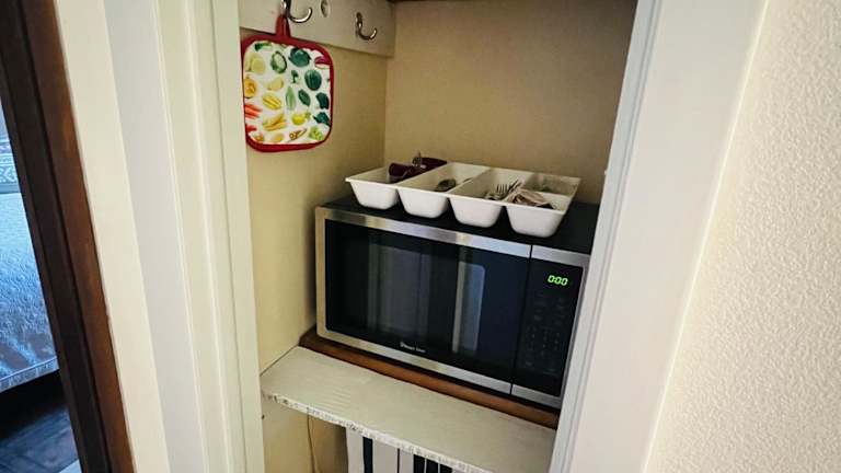 Die Ferienwohnung umfasst ein Schlafzimmer und ein Badezimmer und ist ausgestattet mit Bettwäsche, Handtüchern und einem Flachbild-TV. Die voll ausgestattete Küchenzeile und der Essbereich bieten die Möglichkeit, selbst zu kochen. Die Terrasse mit Flussblick lädt dazu ein, die Natur zu geniessen. Zudem sind Klimaanlage, Heizung sowie kostenfreies WLAN vorhanden.