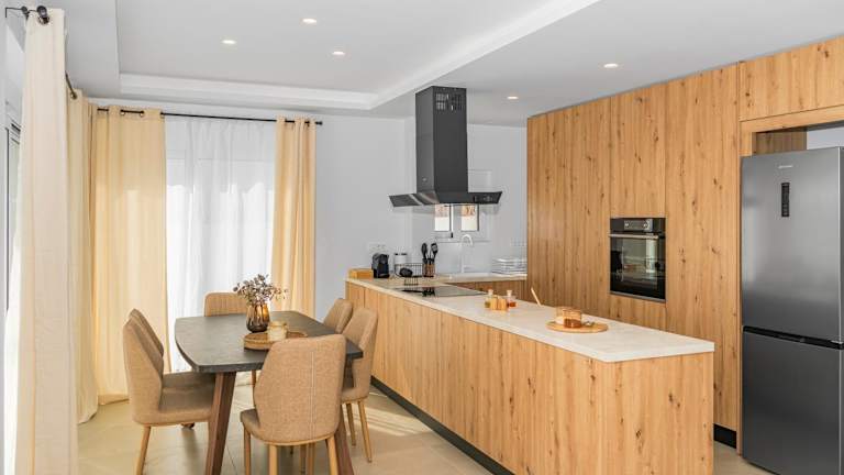 Das Ferienhaus besteht aus 3 Schlafzimmern, einem Wohnzimmer und einer voll ausgestatteten Küche, die mit einem Kühlschrank und einer Kaffeemaschine ausgestattet ist. Es gibt zwei Badezimmer mit einer Badewanne oder Dusche sowie einem Haartrockner. Zudem steht ein Flachbild-TV zur Verfügung. Die Unterkunft hat Klimaanlage und Gartenmöbel, um den Gästen den Aufenthalt angenehm zu gestalten.