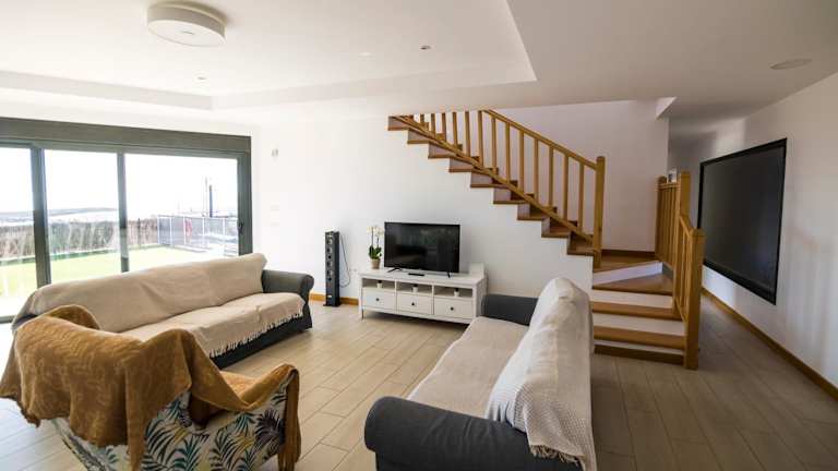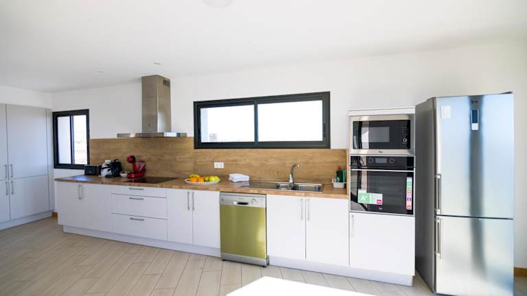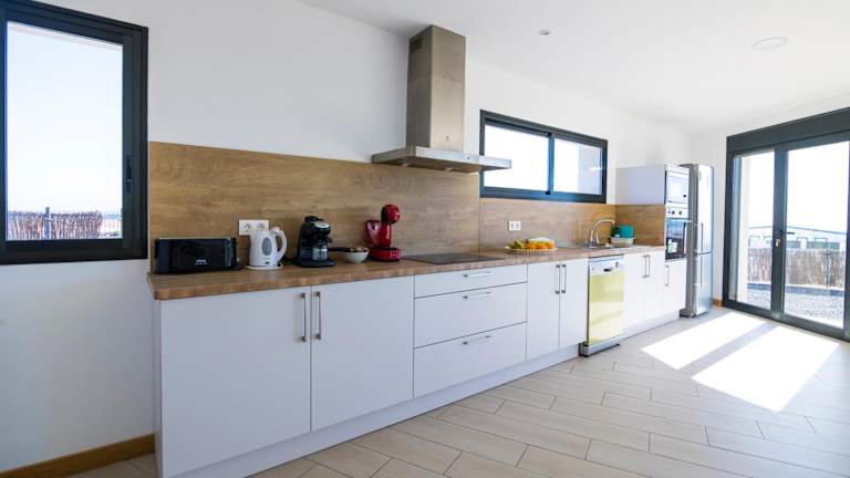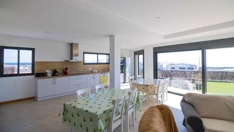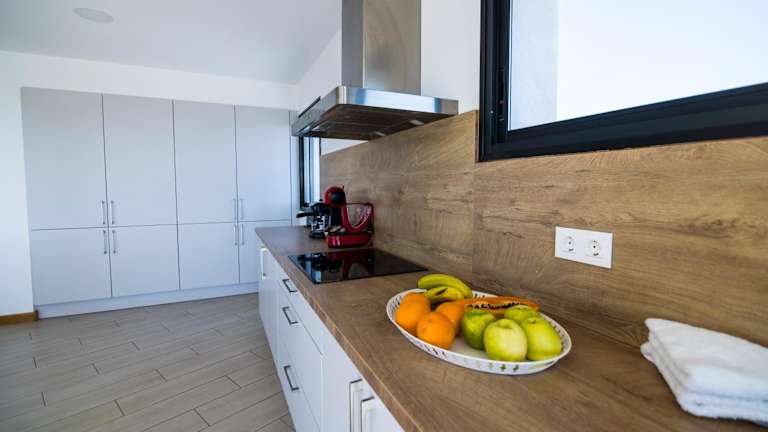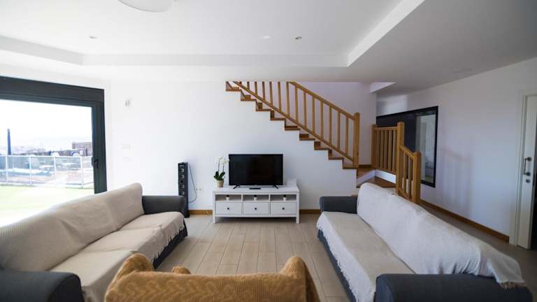 Das Ferienhaus bietet eine komfortable Ausstattung mit vier Schlafzimmern, die Zugang zu einem Balkon haben. Es verfügt über eine gut ausgestattete Küche mit Kühlschrank, Geschirrspüler und Ofen. Die drei Badezimmer sind mit Duschen und kostenlosen Pflegeprodukten ausgestattet. Das Wohnraum bietet Satelliten-Flachbild-TV und einen Blick auf das Meer und die Berge.