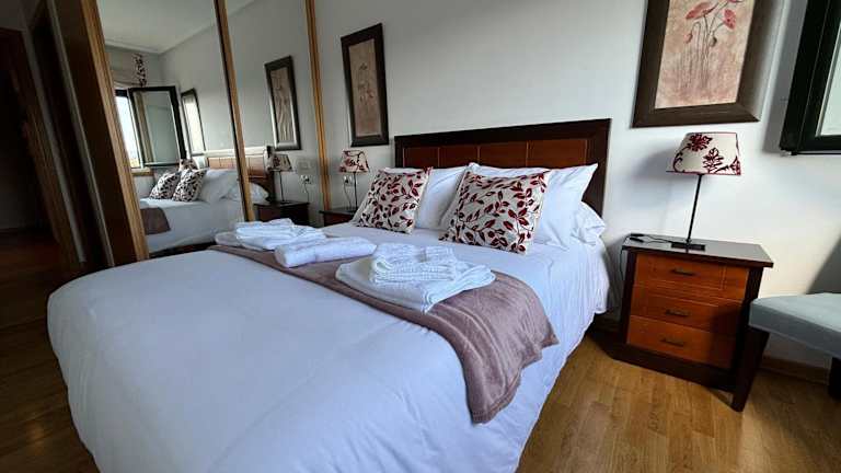 Die Ferienwohnung ist ausgestattet mit 3 Schlafzimmern, einem Flachbild-TV sowie einer voll ausgestatteten Küche, die mit einem Kühlschrank, Geschirrspüler, Waschmaschine, Ofen und Mikrowelle versehen ist. Handtücher und Bettwäsche werden gestellt.