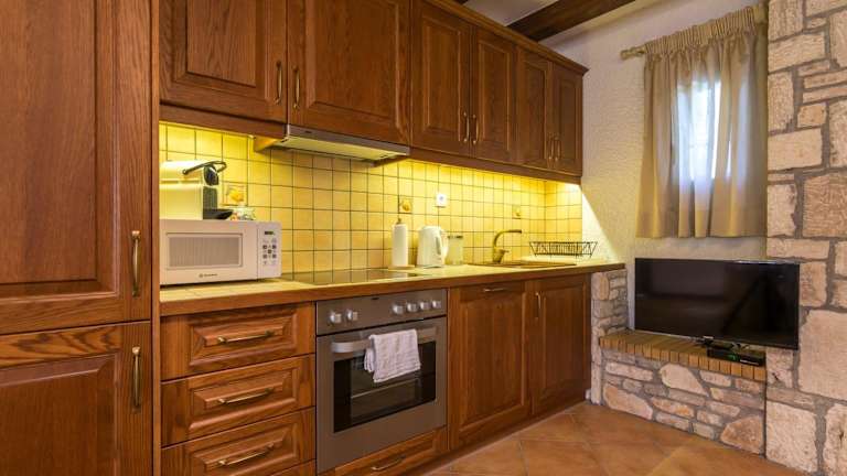 Die Elaia Villas bieten Unterkünfte zur Selbstverpflegung, sodass Sie Ihre eigenen Mahlzeiten zubereiten können. Die voll ausgestattete Küche in jeder Unterkunft bietet alle notwendigen Geräte und Utensilien. In der Nähe finden Sie jedoch auch eine Auswahl an Tavernen, Bars und Restaurants, in denen Sie lokale Spezialitäten genießen können.