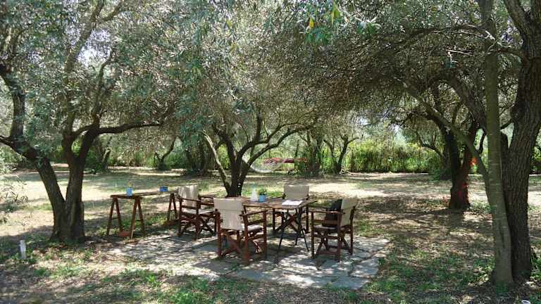 Die Unterkunft Elaionas befindet sich in Ierissós, in der Nähe eines eigenen Strandbereichs. Die Umgebung bietet zahlreiche Möglichkeiten zum Wandern und Angeln.
