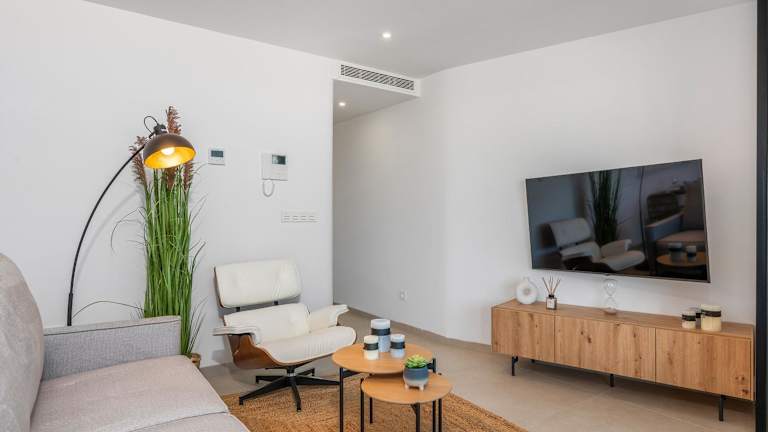 Die Ferienwohnung bietet Klimaanlage, 3 Schlafzimmer, ein Wohnzimmer und eine voll ausgestattete Küche mit Kühlschrank und Kaffeemaschine. Es gibt 2 Badezimmer mit Dusche und Haartrockner. Handtücher und Bettwäsche werden bereitgestellt.