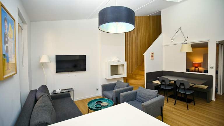 Die Ferienwohnung umfasst zwei Schlafzimmer, ein Wohnzimmer sowie eine voll ausgestattete Küche, die mit einem Kühlschrank und einer Kaffeemaschine eingerichtet ist. Es gibt zwei Badezimmer, die jeweils mit einer Dusche und einem Haartrockner ausgestattet sind. Zusätzlich stehen Handtücher und Bettwäsche zur Verfügung.