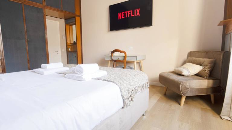 Die Ferienwohnung umfasst drei Schlafzimmer, ein Wohnzimmer und eine voll ausgestattete Küche mit Kühlschrank und Kaffeemaschine. Zudem gibt es zwei Badezimmer, die mit einem Bidet und einer Dusche ausgestattet sind. Handtücher und Bettwäsche werden bereitgestellt.