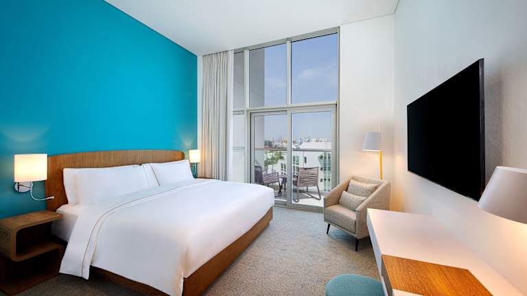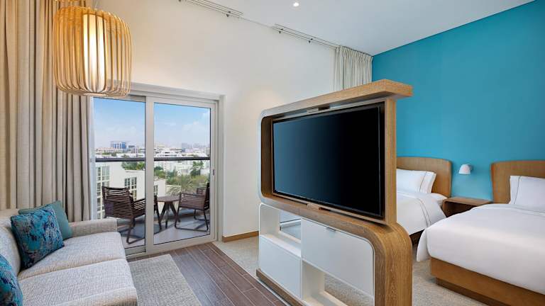 Die Zimmer verfügen über einen Wohnbereich, ein eigenes Badezimmer mit Dusche sowie eine Klimaanlage. Ein Balkon ist in den meisten Zimmern vorhanden. Zur Ausstattung zählen ein Safe, eine Minibar (gegen Gebühr), ein Minikühlschrank, eine Mikrowelle und eine Tee-/Kaffeemaschine. Zimmer sind ebenfalls mit einem Telefon und kostenfreiem Wifi ausgestattet. Es gibt Familien- und Nichtraucherzimmer.