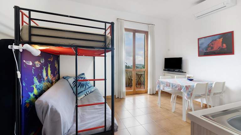 Die Ferienwohnung Elena e Joerg 1 bietet Übernachtungsmöglichkeiten mit Gartenblick sowie Balkon. Die Unterkunft ist mit Klimaanlage ausgestattet und verfügt über eine voll ausgestattete Küche, ein Wohnzimmer und ein Badezimmer mit Dusche und kostenlosen Pflegeprodukten.