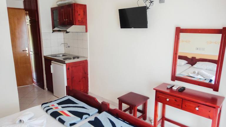 Die Studios im Elena sind einfach eingerichtet, aber bieten dennoch allen Komfort, den Sie für einen angenehmen Aufenthalt benötigen. Jedes Studio verfügt über eine Küchenzeile mit Kühlschrank und Küchenutensilien, so dass Sie Ihre eigenen Mahlzeiten zubereiten können. Zur weiteren Ausstattung gehören Sat-TV, Kochfelder und ein eigenes Badezimmer mit Dusche. Alle Studios sind klimatisiert und bieten kostenfreies WLAN.