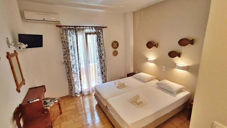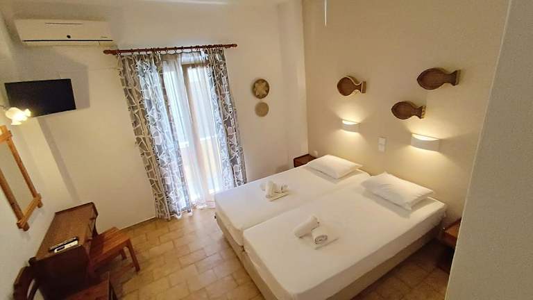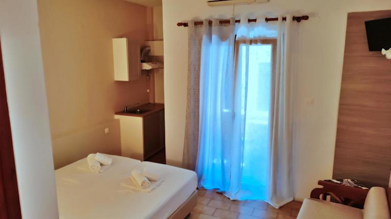 Die klimatisierten Zimmer im Eleni's House sind in warmen Farben dekoriert und verfügen über Fliesenböden, einen TV sowie einen Kühlschrank. Alle Unterkünfte bieten ein eigenes Bad mit einer Dusche und einen Balkon.