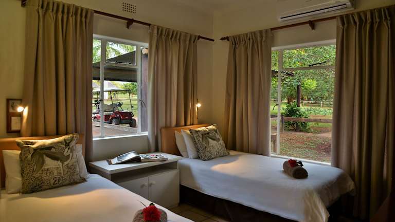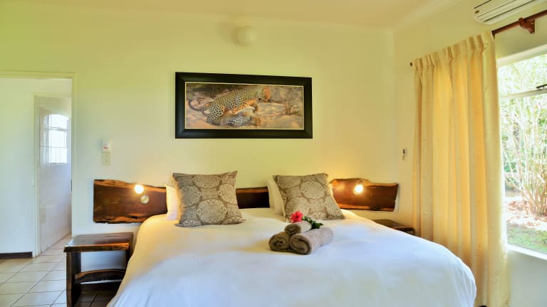 Die klimatisierten Zimmer sind mit einem Ventilator, Kühlschrank, Mikrowelle sowie einem eigenen Bad mit Dusche ausgestattet. Die Wohneinheiten verfügen über einen Balkon oder eine Terrasse, von wo aus die Gäste den Ausblick auf den Crocodile River geniessen können. Jedes Zimmer beinhaltet ein Kingsizebett und ein Sofabett sowie einen Schreibtisch. Zustellbetten können auf Wunsch angefordert werden und es sind Familienzimmer sowie Nichtraucherzimmer verfügbar.