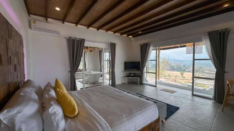 Die Villa besteht aus einem Schlafzimmer und einer voll ausgestatteten Küche. Ein Flachbild-TV sorgt für Unterhaltung.