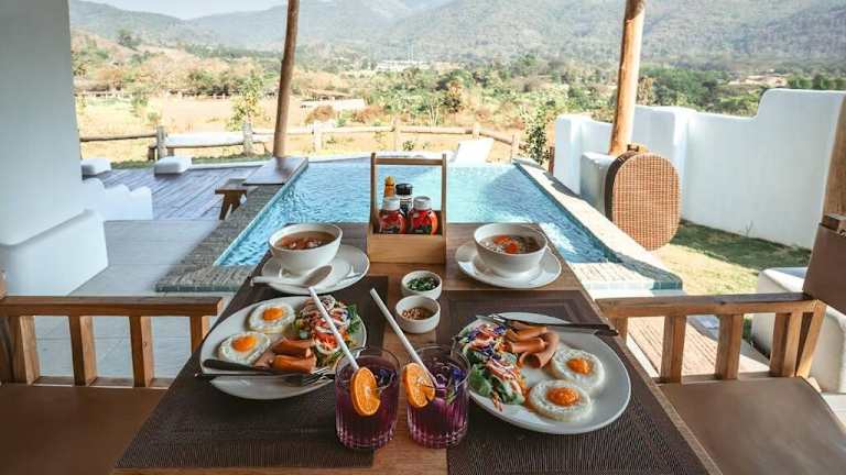 Jeden Morgen wird ein Frühstück angeboten, das amerikanische, vegetarische und vegane Optionen beinhaltet.