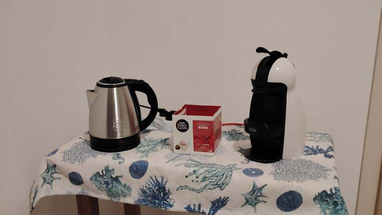 Die Ferienwohnung umfasst ein Schlafzimmer, ein Wohnzimmer sowie eine voll ausgestattete Küche mit Kühlschrank und Wasserkocher. Das Badezimmer ist mit einem Bidet und einer Dusche ausgestattet. Handtücher und Bettwäsche werden bereitgestellt, und zur Bequemlichkeit gibt es Klimaanlage.