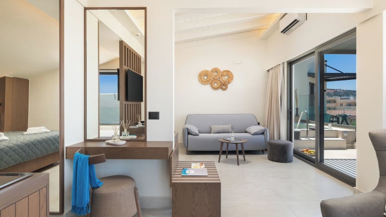 Das Hotel befindet sich in Agia Marina, nur 20 Meter vom Strand Agia Marina entfernt. In der Nähe befinden sich die Strände Stalos (900 m) und Platanias (2 km). Der Flughafen Chania liegt 22 km entfernt.