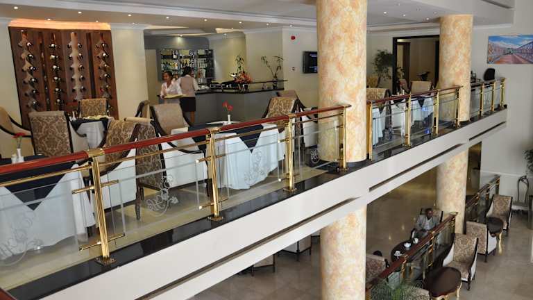 Morgens erwartet die Gäste ein kontinentales Frühstück. Das hauseigene Restaurant bietet internationale und äthiopische Gerichte an.
