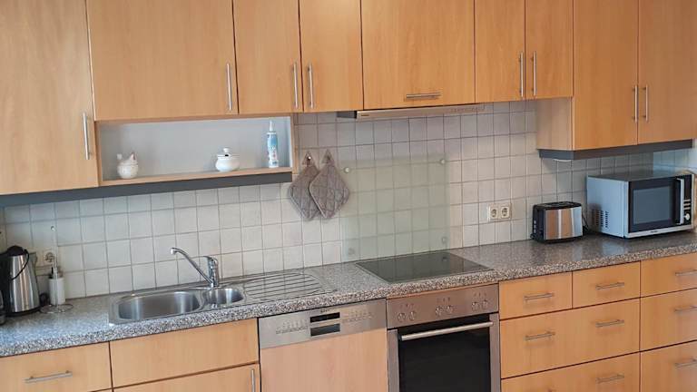 Die Ferienwohnung hat 2 Schlafzimmer, eine Küche mit Kühlschrank und Geschirrspüler, sowie 1 Badezimmer mit Dusche, Haartrockner und Waschmaschine. Handtücher und Bettwäsche werden zur Verfügung gestellt.
