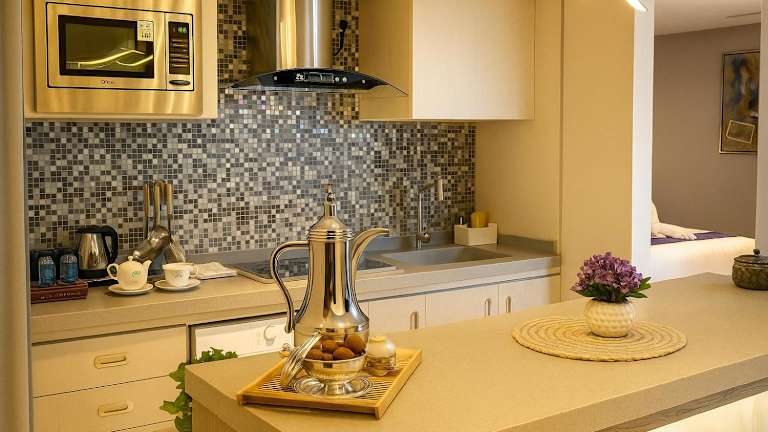 Die Unterkünfte im Elite Al Hamra - Al Andalus sind mit Fliesenböden ausgestattet und verfügen über einen Satelliten Flachbild-TV, einen Safe sowie eine voll ausgestattete Küchenzeile mit Kühlschrank. Jedes Zimmer umfasst ein eigenes Badezimmer mit Dusche, Bidet und kostenlosen Pflegeprodukten. Allergikerfreundliche Zimmer sind ebenfalls verfügbar.
