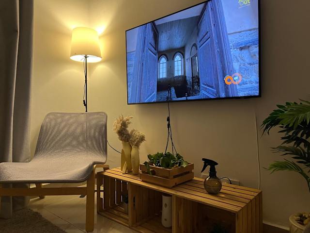 Die Ferienwohnung ist klimatisiert und besteht aus 2 Schlafzimmern, einem Wohnzimmer und einer voll ausgestatteten Küche mit Kühlschrank und Wasserkocher. Ein Badezimmer mit Dusche und kostenlosen Pflegeprodukten gehört ebenfalls zur Ausstattung. Handtücher und Bettwäsche werden bereitgestellt.