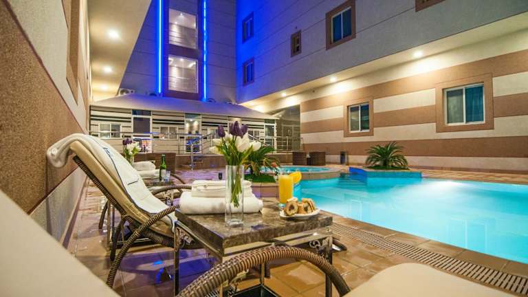 Das Elite Suites hotel - almalqa bietet eine ansprechende Unterkunft mit einem Aussenpool. Die Anlage überzeugt durch kostenfreies WLAN und eine kostenlose Privatparkiermöglichkeit für Gäste, die mit dem Auto anreisen. Es stehen verschiedene Dienstleistungen zur Verfügung, darunter Zimmerservice und ein 24-Stunden-Service an der Rezeption.