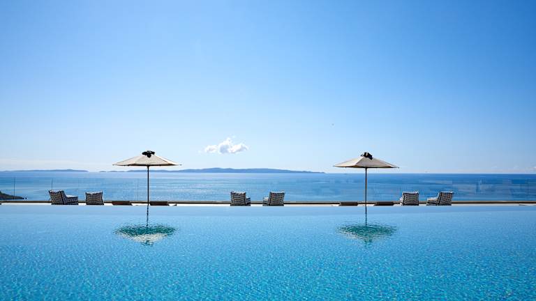 Entfliehen Sie der modernen Pracht von Elix, wo die Berge auf das Meer treffen und Fünf-Sterne-Luxus in unberührter Umgebung liegt. Der perfekte Ort für eine digitale Entgiftung: Entspannen Sie an den wunderschönen, ruhigen Stränden, tauchen Sie in das türkisfarbene Ionische Meer ein oder wählen Sie aus einem fantastischen Angebot an Aktivitäten. Fahren Sie mit Kajaks oder Fahrrädern, wandern Sie durch atemberaubende Landschaften und trainieren Sie im Fitnessstudio. Oder entspannen Sie einfach am weißen Sandstrand, lassen Sie sich im Spa verwöhnen und genießen Sie die Sonne am Pool – alles für ein völlig entspanntes Erlebnis. Die Zimmer und Suiten sind hell, geräumig und exquisit gestaltet und bieten eine Mischung aus Balkonen, privaten Pools und spektakulären Ausblicken auf den Sonnenuntergang über den Inseln Korfu, Paxos und Antipaxos. Die Küche ist ebenso beeindruckend, mit einer Auswahl an Restaurants, von gehobener mediterraner Küche bis hin zu familienfreundlichen Buffets, während unsere entspannten Bars ideal zum Entspannen nach einem erlebnisreichen Tag voller Entdeckungen sind. Lassen Sie also Ihre Technologie hinter sich und lassen Sie sich von Elix auf eine luxuriöse Reise durch unentdeckte Schönheit und Gelassenheit entführen.