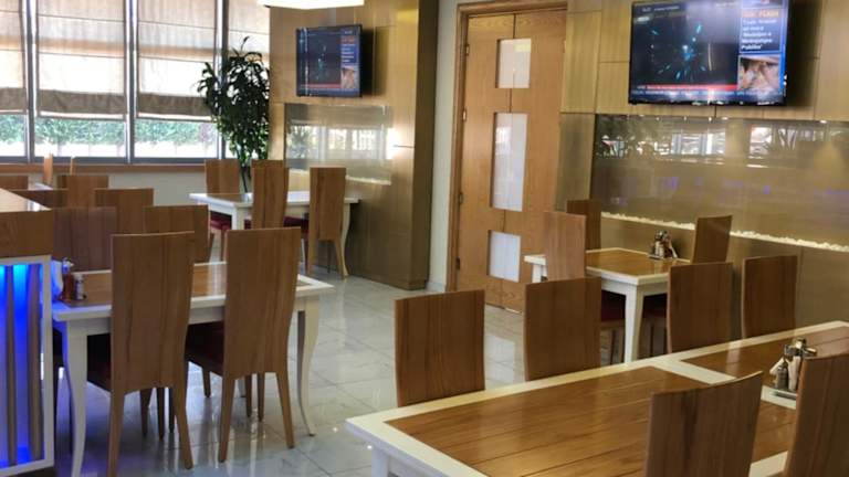 Im Hotelrestaurant werden italienische und mediterrane Küche sowie Pizza angeboten. Auf Anfrage sind ebenfalls vegetarische, halal-zubereitete und vegane Optionen erhältlich.