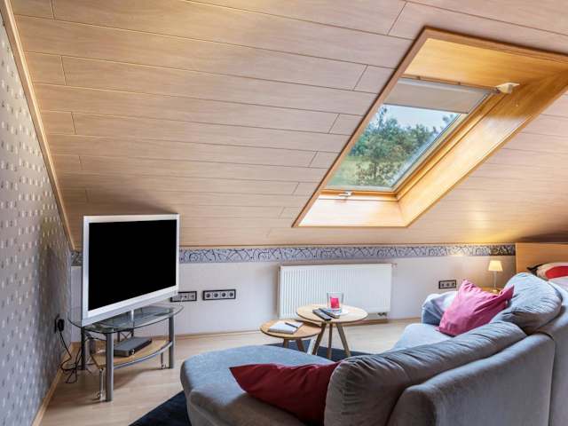 Die Ferienwohnung umfasst ein Schlafzimmer und ein Badezimmer. Zudem sind Bettwäsche, Handtücher und ein TV mit Satellitenkanälen vorhanden. Eine voll ausgestattete Küche ermöglicht die Selbstverpflegung. Der Balkon bietet einen Blick auf den Garten.