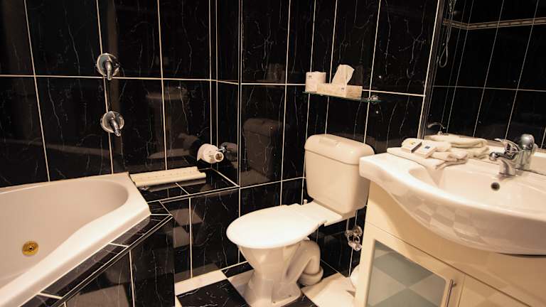 Die Zimmer sind komfortabel eingerichtet und verfügen über eine Klimaanlage, Heizung, ein eigenes Badezimmer mit Dusche und Badewanne sowie Tee- und Kaffeezubehör. Viele Zimmer sind mit einem Flachbild-TV und einer eigenen Whirlpool-Badewanne ausgestattet. Zusätzliche Annehmlichkeiten umfassen ein Bügelset, WiFi und Nichtraucherzimmer. Für angenehmes Raumklima und Bequemlichkeit ist bestens gesorgt.
